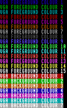 Sets the text foreground colour to a VGA palette entry (0–15).