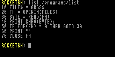 Outputs the ASCII contents of a file, mainly useful for BASIC programs.